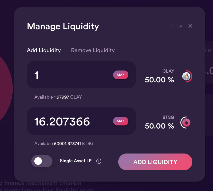 To provide Liquidity on the Pool click on Add/Remove Liquidity
